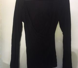 Top noir Jennyfer effet cache-coeur Manches longues légèrement bouffantes Taille S Matière légère, très agréable à porter