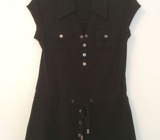 Tunique noire J-2 Taille 36/38 Lien de serrage à la taille 2 poches poitrine fermées par une pression 95% coton, 5%M elasthane