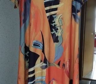 robe longue noire fendue sur un côté(45 cm) surpiqures blanches encolure au carré longueur de la robe 140 cm pet être raccourcie largeur sous bras prise à plat 50cm tour de tai