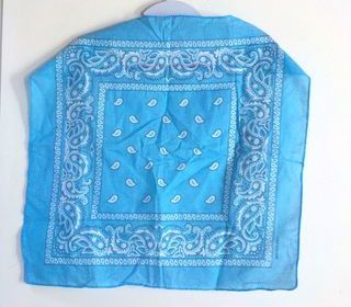 BANDANA BLEU AVEC DESSINS 100% COTON 52 cm x 52 cm Très bon état Remise en mains propres tous les jours à Bubry et sur RV à Pontivy, Baud, Guémené, Plouay Prix : 5 e