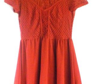 ROBE ORANGE DIVIDED H&M TAILLE 36 65% coton, 35% polyamide Haut en dentelle, en partie doublé manches courtes Bas façon jupe évasée Merci de vous référer aux mesures ci-