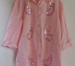 SURCHEMISE / CHEMISIER ROSE Broderies avec sequins TAILLE XXL MAIS merci de vous référer aux mesures ci-dessous 100% coton Longueur épaules/bas du vêtement : 79 cm Largeu