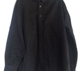CHEMISE NOIRE 8th Avenue Taille 44 35% Coton, 65% Polyester Merci de vous référer aux mesures ci-dessous Largeur encolure : 18 cm Largeur épaules : 54 cm Largeur poitrine