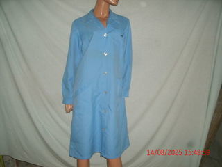 blouse nylon bleue clair portée par le personnel feminin d'une grande entreprise il y a de cela quelques deçennies 1 poche poitrine avec logo floqué 2 poches plaquées 2 manch
