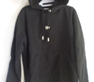 SWEAT NOIR avec capuche Taille M Manches longues Sigle DG Bon état (le linge est relavé et repassé avant envoi) Merci de vous référer aux mesures données ci-dessous L