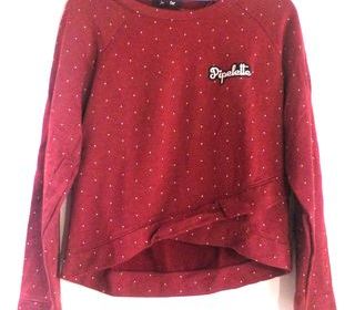 SWEAT FIN JENNYFER COULEUR PRUNE A POINTS BLANCS Broderie "Pipelette" sur le côté gauche poitrine Taille S 73% coton, 27% polyester Bas avec effet croisé Merci de vo
