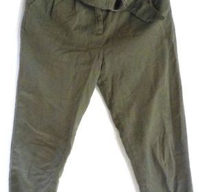 PANTALON VERT KAKI BERSHKA TAILLE 36 100% COTON Taille en corolle ceinture 2 poches Revers à la cheville Merci de vous référer aux mesures ci-dessous Largeur taille : 3