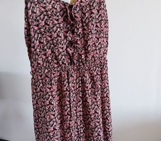 Blouse sans manche smok, dentelle, petites perles transparentes 100% polyester Longueur 56cms