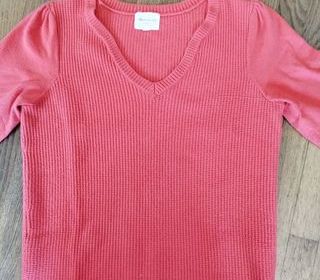 Pull 123 col V manches 3/4 en coton, agréable a porter Très bon état. Couleur corail. Peu porté.