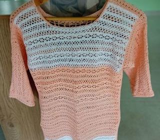 Pull crocheté par une couturière Pull chic et très agréable à porter avec de Fines mailles en crochet de Taille T/40 Manches semi-longues et avec un Col arrondi Largeur Aisse