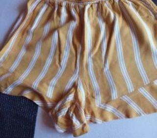 SHORT FLUIDE FEMME COULEUR MOUTARDE TAILLE 36 RAYE BLANC TAILLE ELASTIQUE LARGEUR TAILLE 27 CM HAUTEUR 33 CM 100% VISCOSE MARQUE KIABI