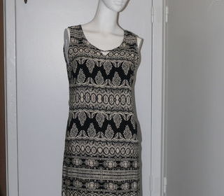 Robe "ARMAND THIERY" beige et noire doublée taille 38 Coupe droite, longueur 92 cm