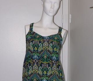 Top fond noir imprimé vert, bleu, beige... : taille 36 Bretelles élastiquées