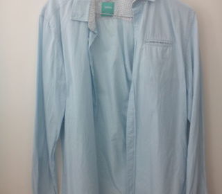 Je vends une chemise Jules bleue taille S avec poche à gauche. Coton, polyester.
