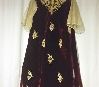 ROBE FERGANI EN VELOURS DE COULEUR BORDEAUX FAIS MAIN JAMAIS PORTE LA TAILLE CONVIENDRAIT A UN 38 A 44 C' EST AMPLE . J'ATTEND VOTRE OFFRE.