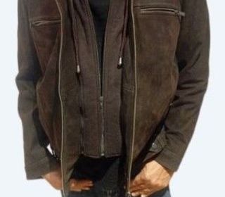 Veste en cuir (Nubuck) homme neuve (jamais portée) de très belle qualité, sans étiquette, taille XL. Capuche en sweat amovible.