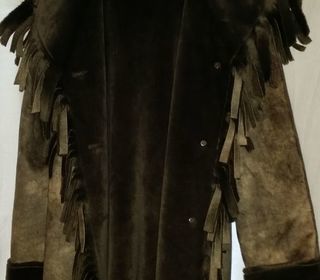 BEAU MANTEAU TAILLE L A XL DE COULEUR KAKI .VOIR LES PHOTOS , LE MANTEAU A DES FRANGES.