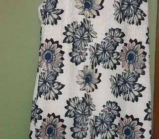 robe sans manche, marque Iska London, taille 38, blanche et bleue. Polyester avec doublure.