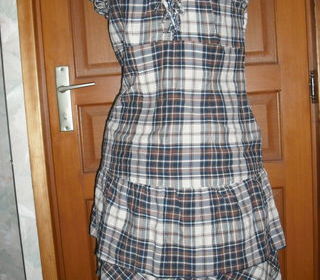 robe à carreaux marron-écru- bleu foncé 62 % coton 37 % polyester 1% élasthanne taille 38 6 euros + port si envoi (possibilité de la déposer sur Amiens ou Abbeville)