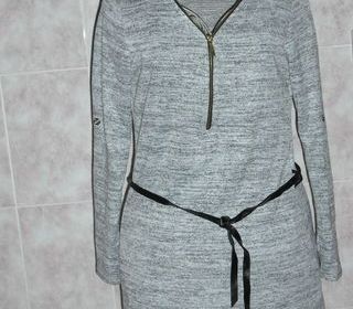 pull tunique été avec ceinture gris chiné T38 95 % acrylique - 5 % élasthanne neuf 10 euros