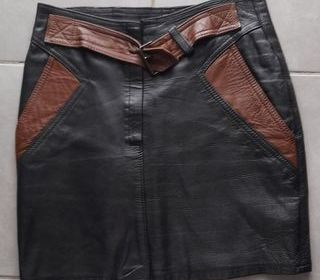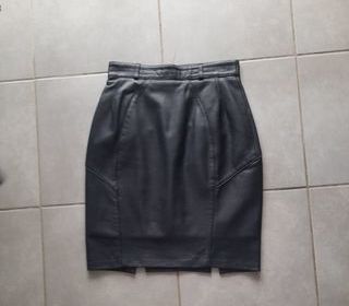 Jupe en pur cuir. Tour de taille 68 cm, hauteur de jupe 51 cm