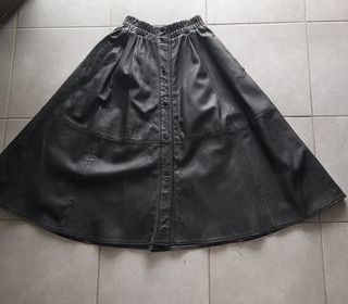 Jupe en pur cuir. Tour de taille 70 cm taille élastique, hauteur de jupe 76 cm.