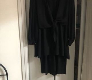 Ensemble jupe et tunique grise de belle qualité. Taille unique. Composition : 50% coton, 50% acrylique.