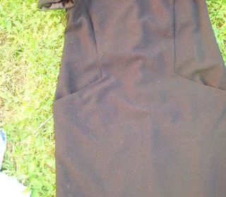 Robe noire habillée à manches courtes, en crêpe brillant, 2 poches sur le devant. Toute la fantaisie est dans la manche ( voir photos ) encolure en V aucune fermeture, entièrement