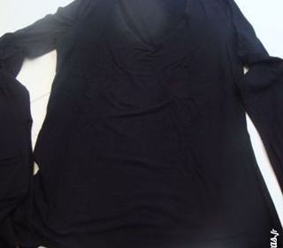 Pull noir à manches longues ,encolure en V.En fin jersey légèrement extensible.Taille 38.En bon état Pull identique en marron. Nous contacter par tél ou ou par mail Possibili