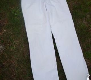 Pantalon blanc extensible,Bas de pantalon 19 cm,composition:98% coton et 2%élasthanne.Taille 40.En bon état Nous contacter par tél ou ou par mail Possibilité d'envoi