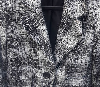 Veste Tendance chinée noir/blanc. Laine et acrylique. Marque Jacqueline Riu. Taille 42. Pas d'envoi. Tél. 20 €