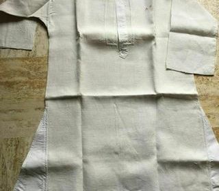 Ancienne CHEMISE en grosse toile écrue coton / lin monogramme AB Largeur aisselles : 58 cm Hauteur emmanchures : 37 cm Largeur bas : 80 cm Hauteur totale : 97 cm Poi