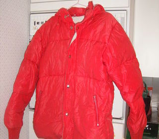 vends doudoune rouge homme avec capuche taille S 60% duvet de canard 40% plumes