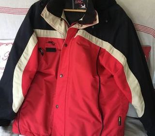 Blouson et pantalon de ski rouge avec brettelles. Marque SNC. Imperméable et léger à porter.Taille bien.