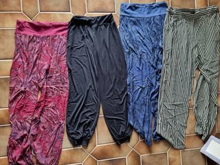 Bonjour, nous mettons en vente ce lot de 4 pantalons sarouel vert, bleu, rose et vert pour femme taille S/M vendu d'occasion. État : Bon. ??N'hésitez pas consulter notre profil