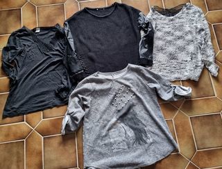 Bonjour, nous mettons en vente ce lot de 4 pulls gris et noire pour femme taille L/XL vendu d'occasion. État : Bon. ??N'hésitez pas consulter notre profil car nous y avons publi