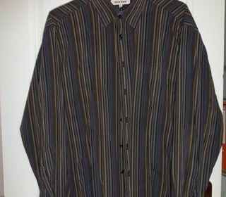 CHEMISE OLLY GAN à rayures ton marron, bleu, ocre.. taille 4 . 1 poche devant