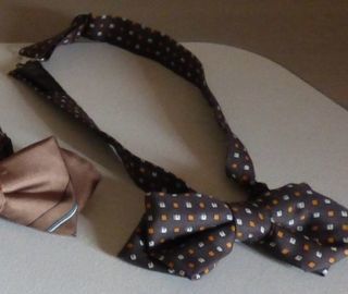 NOEUD papillon ton marron,orange,blanc - ajustable - en soie - fermé par un crochet