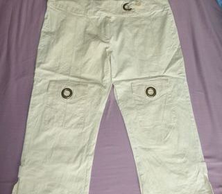PANTACOURT beige clair . taille 44 . 2 poches basses . zippé devant . déco avec des anneaux.