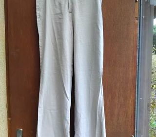 55 % Lin 45 % Viscose Femeture par zip et petit boutons 2 fausses poches à l'arrière Excellent état Remise en mains propres sur Lourdes contre paiement en espèces ou