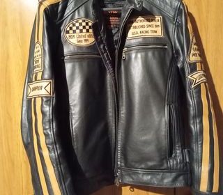 Blouson de moto unisexe noir bandes orange aux manches ,avec coques de protection taille M très on état peu porté