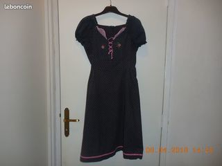 robe noire à petits pois blancs en coton taille 40 42 fermeture éclair dans le dos ceinture dans le dos hauteur total 95 cm tour poitrine 90 cm