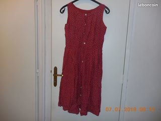 robe entre le rouge et le bordeau taille 2 38 avantage il y a 2 poches hauteur total 1.10 m sous emmanchure 47 x 2 agréable à porter