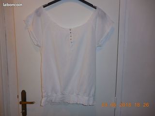 chemisier d'été écrit t 38 mais je dirais plutot 42 44 tour de poitrine 100 cm hauteur total à partir de l'épaule 67 cm hauteur du dessous de l'emmanchure 42 cm 100 °/° coton