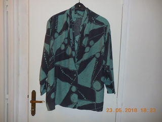 Ensemble chemisier + jupe distingué Joli chemisier drapé sur le devant faisant 1.20 de tour de poitrine couleur vert et gris la jupe grise de taille 50 tour de taille 90