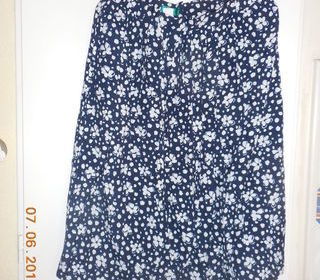 jupe bleu marine et blanche fleurie taille 48 100 °/° viscose longueur 77 cl largeur de la ceinture 86 cm elastiquée jusqu'à 96 cm très bon état