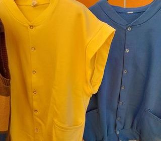 robe vintage en coton taille 42 bleu avec petites rayures bordeaux manches demi longues bon état