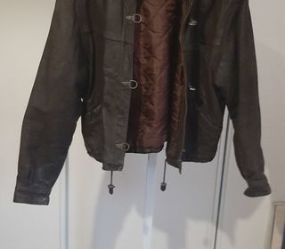 portée quelques fois - attaches mousquetons - poches plaquées en biais - lien en bas de la veste - extérieur cuir vachette skipper - doublure matelassée - étiquette Best Tailor - t
