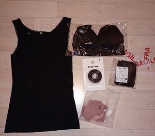 Il s'agit d'un chemisier noir MANGO avec ceinture