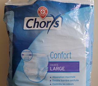 Culottes CHORYS Large pour la Nuit - 1 pack neuf de 10 - 1 pack entamé avec 7 restantes + - 1 pack Large (jour) avec 5 restantes